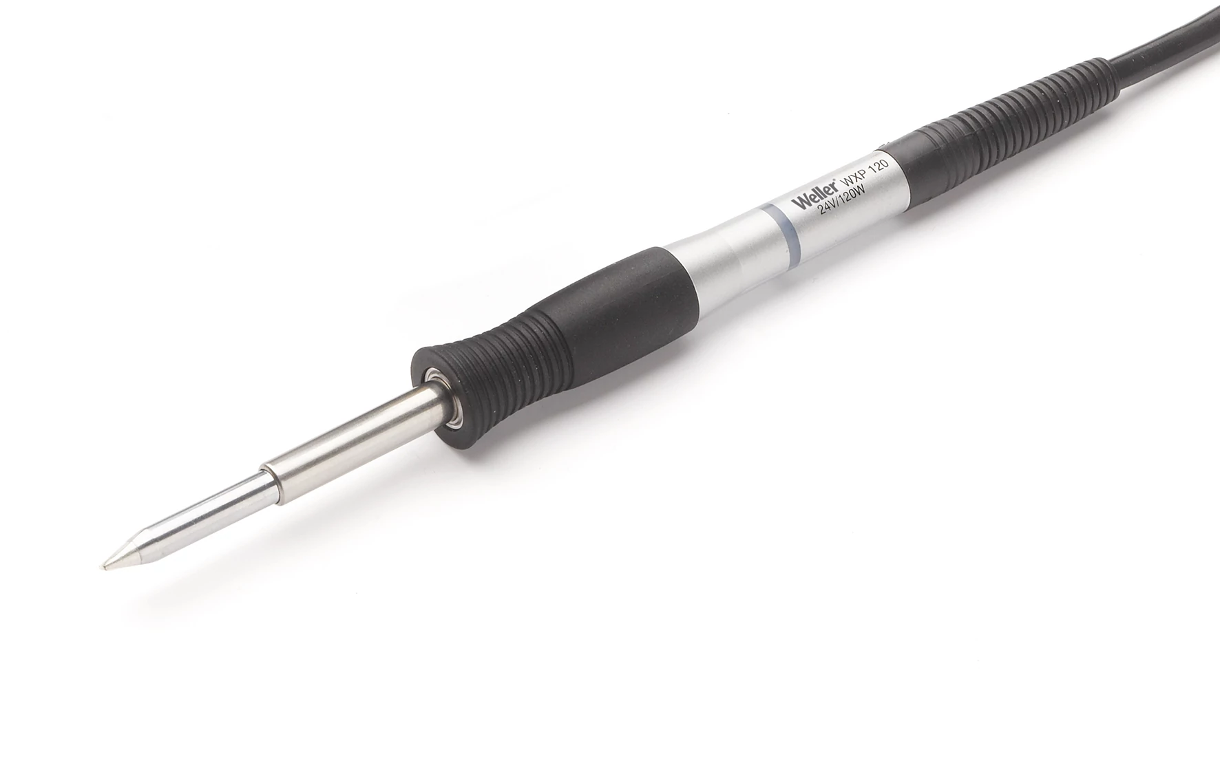 Ciocanul de lipit Weller WXP 120 se remarcă prin atingerea temperaturii de lipit rapid, și precis. Elementul de încălzire ultra performant de 120W oferă încălzire rapidă remarcabilă și menținerea temperaturii precise. Datorită formei sale subțiri și a distanței scurte dintre vârful de lipit și mâner, este ideal pentru lucrări de lipire extrem de fine. Ciocanul de lipit este echipat cu senzor de mișcare, a cărui sensibilitate poate fi reglată din meniul surselor de alimentare Weller seria WX. Ciocanul de lipit începe a se încălzi imediat ce este scos din suport. Atunci când temperatura setată s-a atins LED-ul integrat în ciocanul de lipit rămâne aprins continu. Datorită designului hibrid, vârful de lipit (și/sau elementul de încălzire ) poate fi înlocuit ușor și rapid. Acest aspect face de asemenea munca mai eficientă. Elementul de încălzire și senzorul de temperatură ajung până la capătul vârfului de lipit,asigurând încălzirea rapidă și controlul precis al temperaturii oferind o funcționare mult mai rentabilă în comparație cu modelel de vârf activ. Setarea temperaturii de așteptare și setarea timpilor de comutare pot fi găsite în instrucțiunile de utilizare ale sursei de alimentare respective.