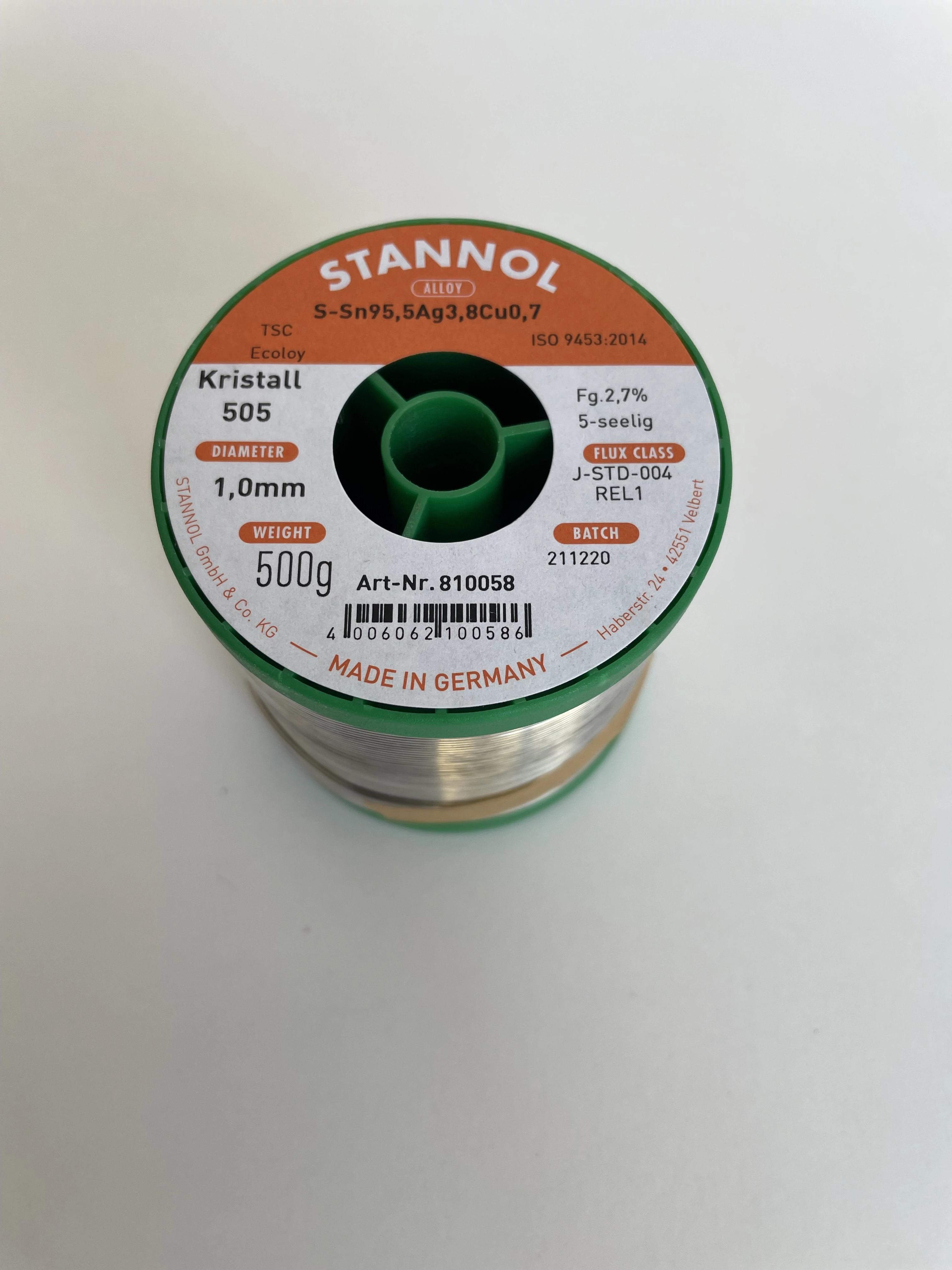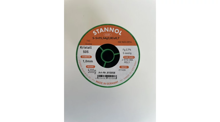 Sârmă de cositor Stannol Sn95,5Ag3,8Cu0,7 1,0mm 500g