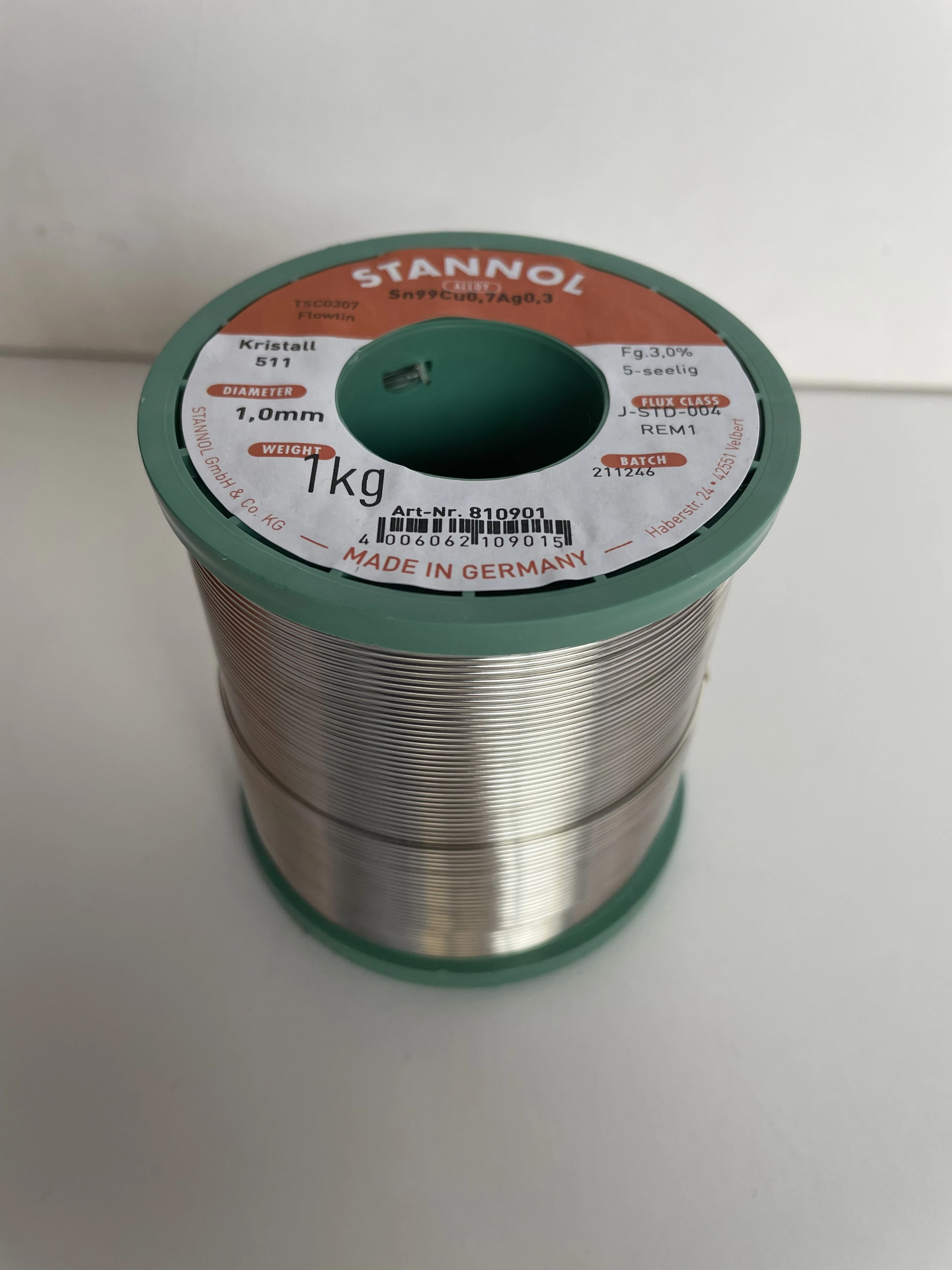 Sârmă de cositor Stannol Sn99,3Cu0,7 1,0mm; 1000g