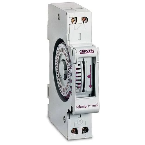 Grässlin Talento Mini 111 este montabil pe șină DIN, permite instalarea și setarea cu ușurință a programelor zilnice, precum și programelor de oră. Timpul și programele setate pot fi verificate într-o clipă datorită designului transparent, putând fi utilizat și în alte domenii precum controlul iluminatului vitrinelor, panourilor publicitare, controlul rulourilor motorizate sau a pompelor din fântâni, piscine.
